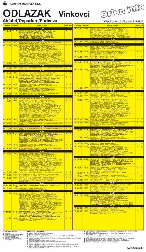 Novi vozni red stupa na snagu 14. prosinca 2025. i vrijedi do 12. prosinca 2026. godine.