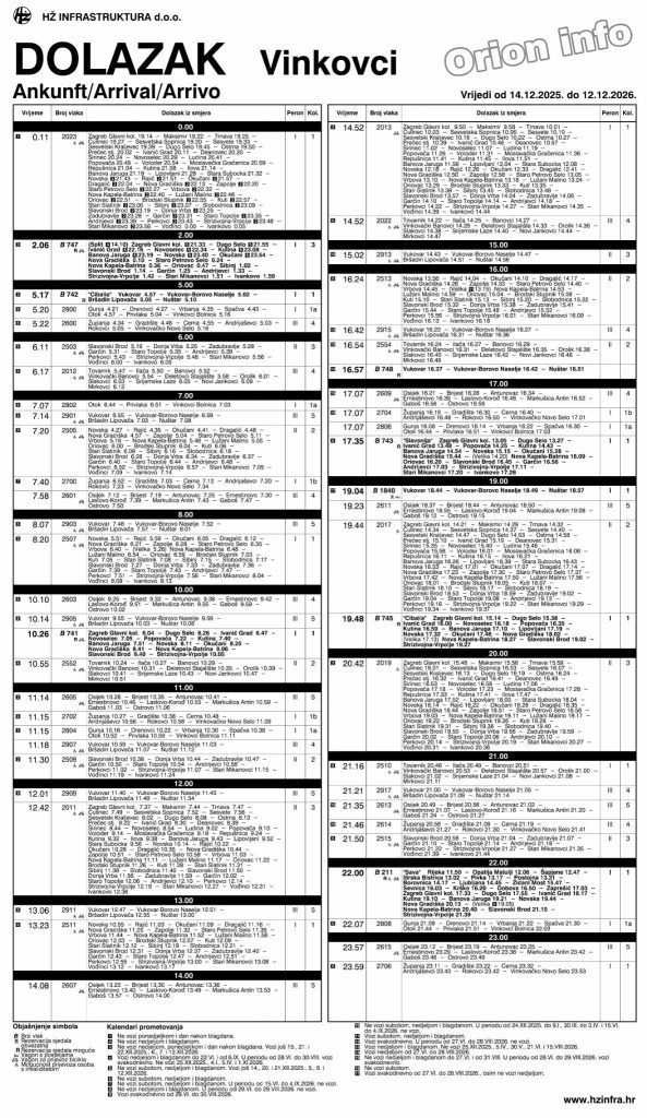 Novi Vozni red za Kolodvor Vinkovce- DOLAZAK U VINKOVACA.