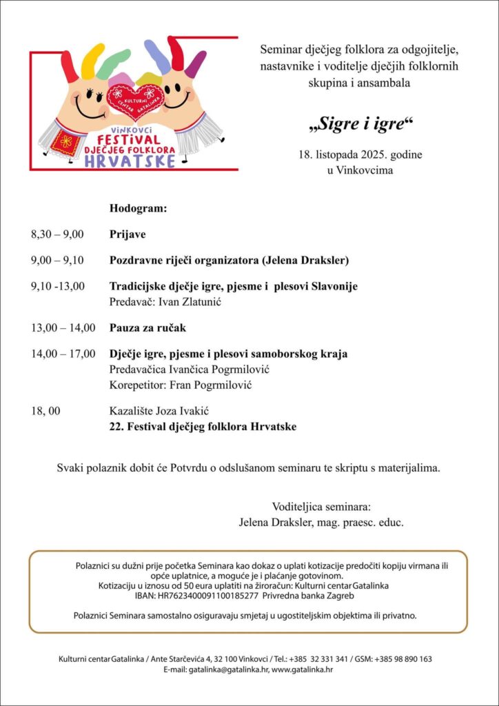 U Gradskom kazalištu Joza Ivakić u Vinkovcima, ovoga će se vikenda, u subotu, 18. listopada 2025. godine održati 22. Festival dječjeg folklora Hrvatske.