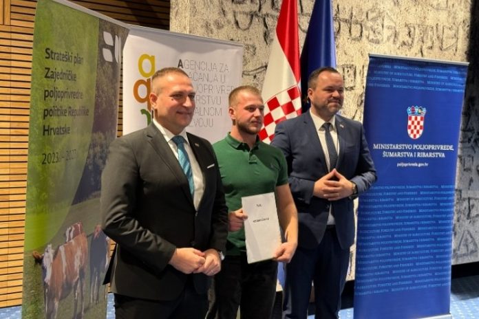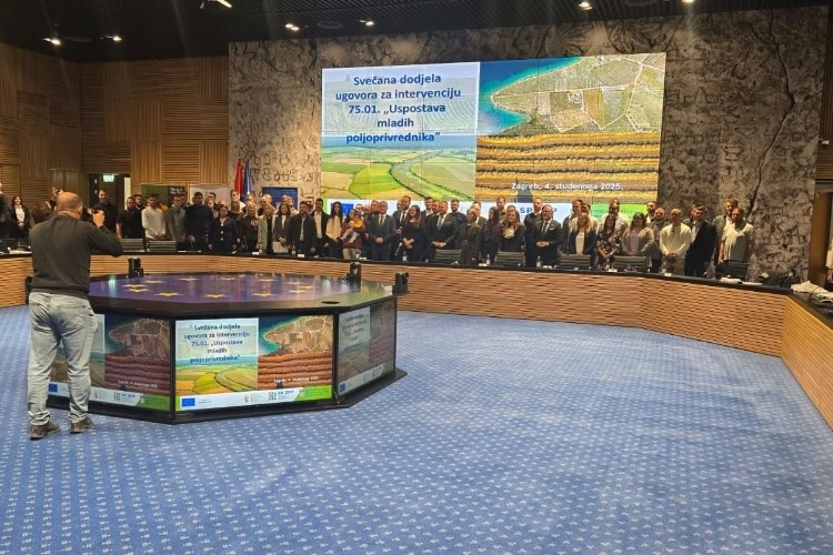 Potpredsjednik Vlade i ministar poljoprivrede, šumarstva i ribarstva David Vlajčić u utorak, 4. studenoga 2025. godine, u Nacionalnoj i sveučilišnoj knjižnici u Zagrebu uručio je 63 ugovora mladim poljoprivrednicima, ukupne vrijednosti 4,8 milijuna eura, a sveukupno je na adrese korisnika odaslano 83 ugovora u vrijednosti 6,2 milijuna eura.