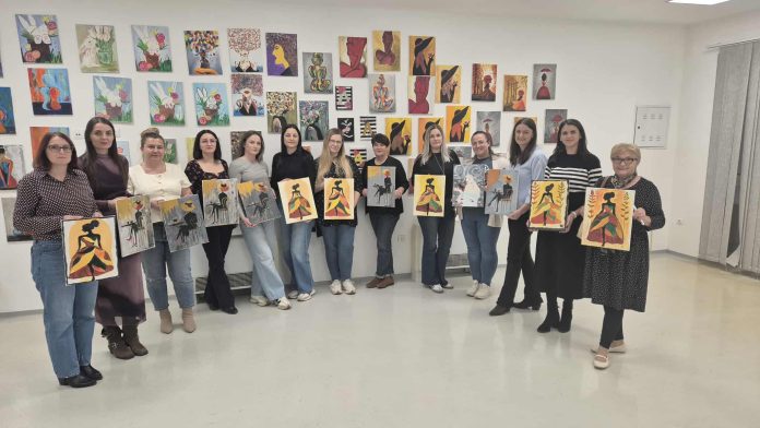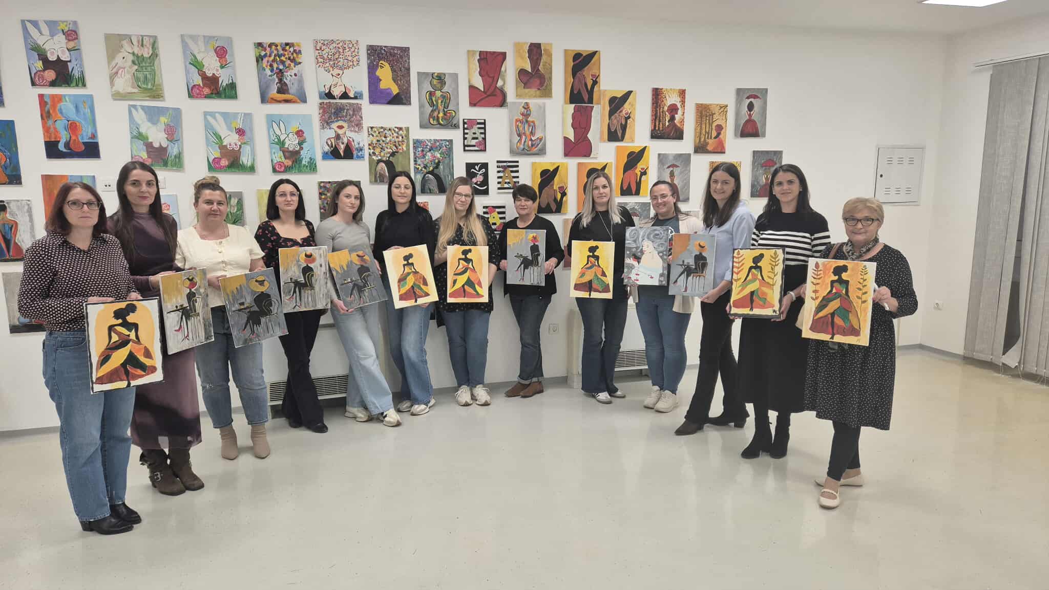 Radionica je održana u sklopu projekta „Održavanje mentalnog zdravlja žena u malim sredinama“, a ujedno je bila i četvrta te posljednja u ovogodišnjem ciklusu. Tematski motivi bili su usklađeni s godišnjim dobom – prikazi žene koja sjedi i pije kavu, žene u haljini od jesenskog lišća te žene u bijelom koja drži ptičicu dok pada snijeg. Kao i uvijek, radionicu je pratila opuštena atmosfera uz čašu vina, kiflice, grickalice i kolače.