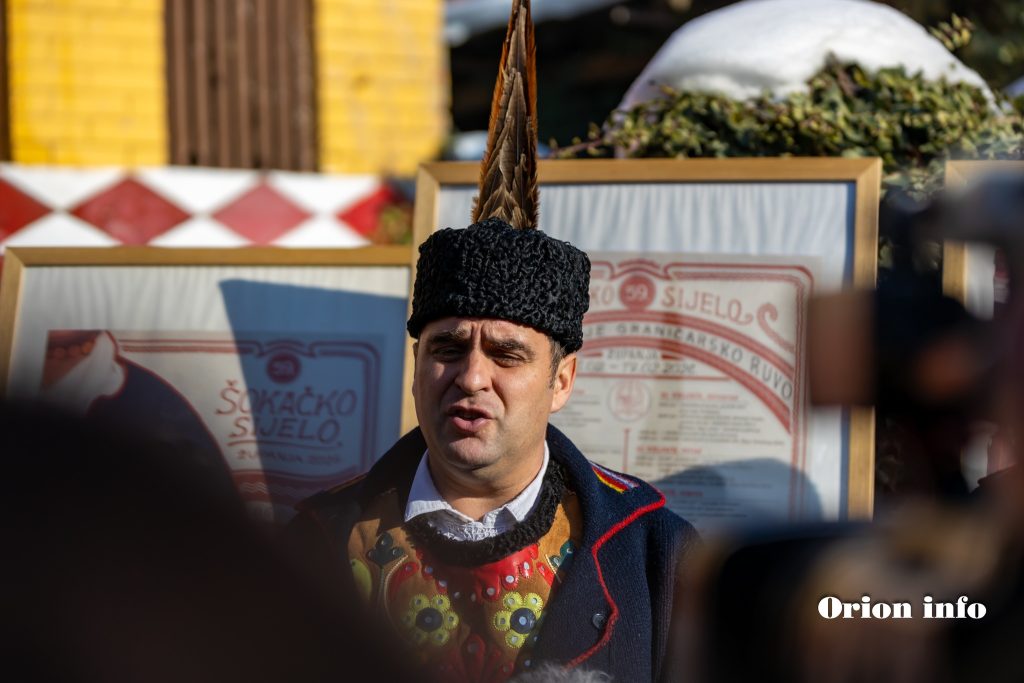 “Dobro došli u Županju, dobrodošli u kolijevku svega lijepo kad govorimo o Šokadiji, pjesmi, konjima i ovogodišnjoj našoj temi, dakle “špenzletu”, prije svega pozdravljam župana Ivana Bosančića i njegove šare iz vinkovačkog kraja evo ja imam ovih dvanaest koje su cvelferske. Cijelo ovo sijelo neka nam bude podsjetnik da se pokrene negdje opet proizvodnja tog špenzleta. Hvala što kroz i ovo sijelo i sve druge manifestacije njegujete ono što nam je zaista bitno, našu tradiciju i sve ono lijepo što Slavonija nudi, a ne tiče se direktno onog svakodnevnog života. Evo u ime organizacijskog odbora i kao gradonačelnik sve vas pozivam na ovogodišnje 59. Šokačko sijelo”, rekao je gradonačelnik Županje Damir Juzbašić.