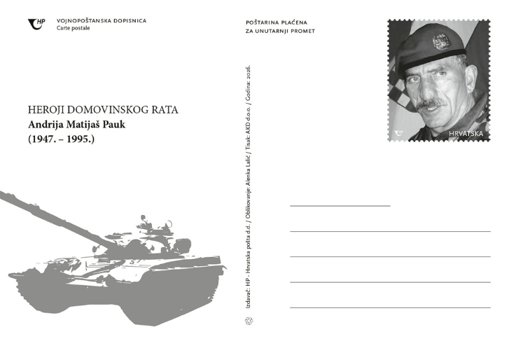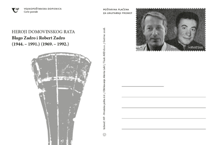 Na dopisnicama su prikazani heroji Domovinskog rata Blago i Robert Zadro, Jean-Michel Nicolier, Andrija Matijaš Pauk i Rudolf Perešin.