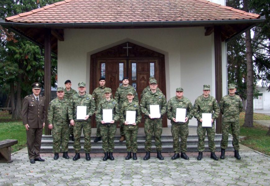 U vojarni “123. brigade HV” u Požegi, u utorak, 16. prosinca 2025., održana je svečanost u povodu završetka izobrazbe 5. naraštaja Izobrazbe za prvu dočasničku dužnost vojnih specijalista.
