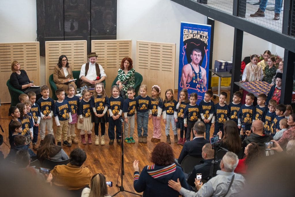 Predstavljanje slikovnice otvorili su najmlađi, članovi KUD-a Tomislav i polaznici skupine Leptirići Dječjeg vrtića “Maslačak” iz Županje koji su otpjevali pjesmu “Junak iz Like” omiljenu inače pjesmu Marijana Matijevića koju je često pjevao prigodom izvođenja sportskih točaka u arenama.